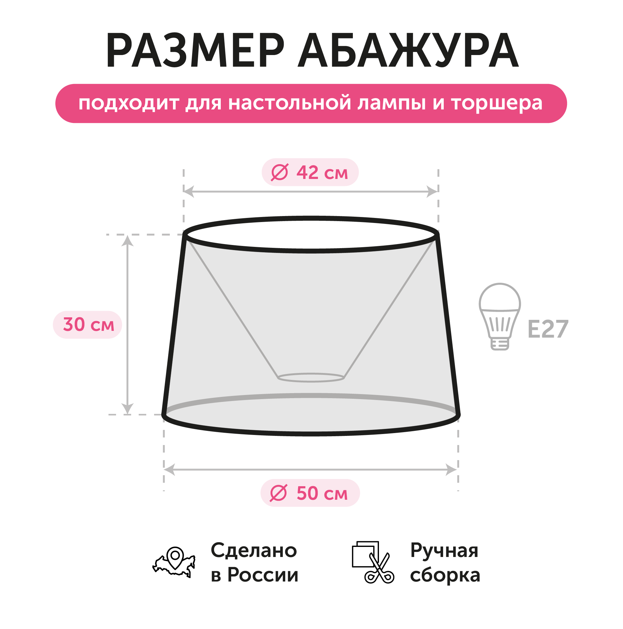 Длина 500 мм. Ширина 500 мм. Высота 300 мм. Диаметр 500 мм. Верхний диаметр 420 мм. Вес товара 0.55 кг.