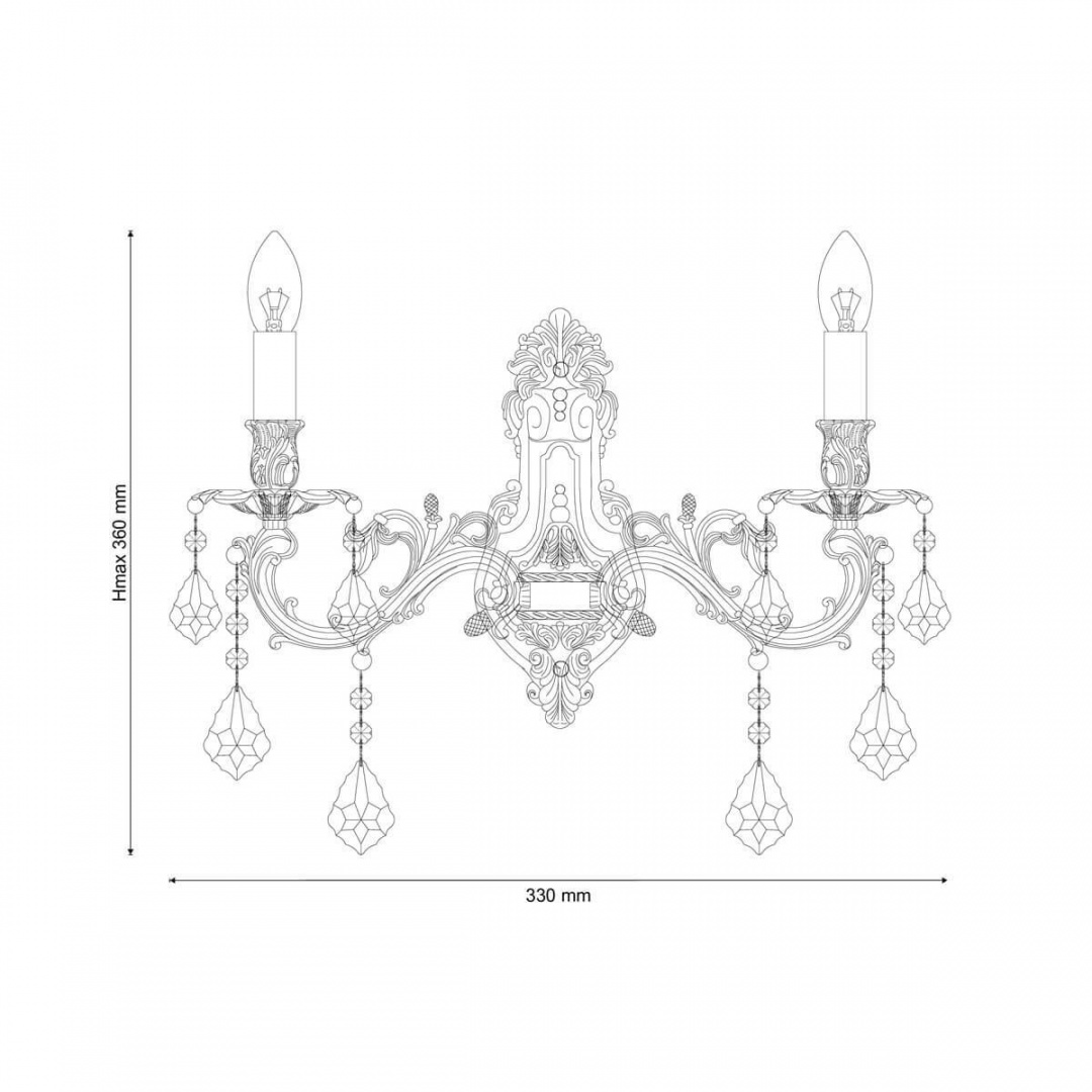 Цоколь E14. Вид ламп: накаливания. Количество ламп 2 шт. Мощность одной лампы составляет 60 Вт. Общая мощность 120 Вт. Напряжение 220-240 Вольт.