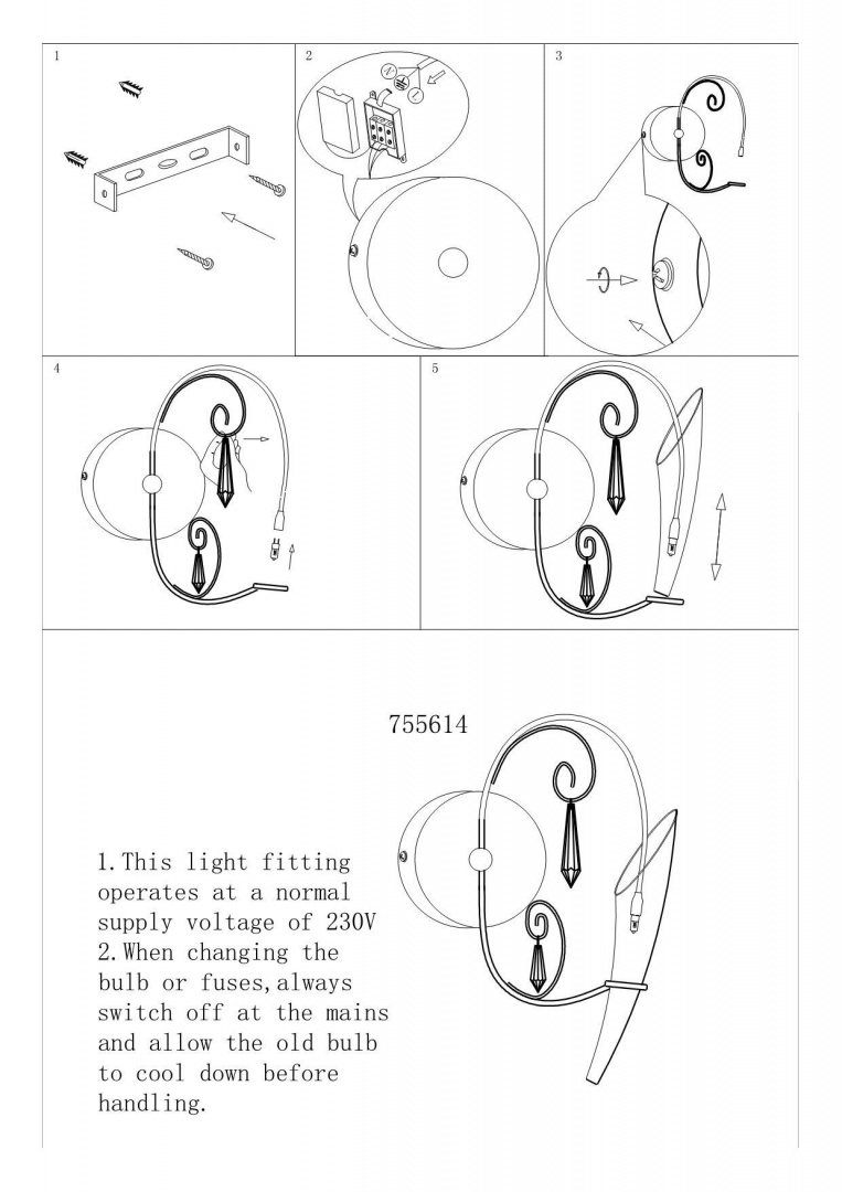 Комплектация: Бра. Инструкция по сборке/использованию. Детали, необходимые для сборки товара.