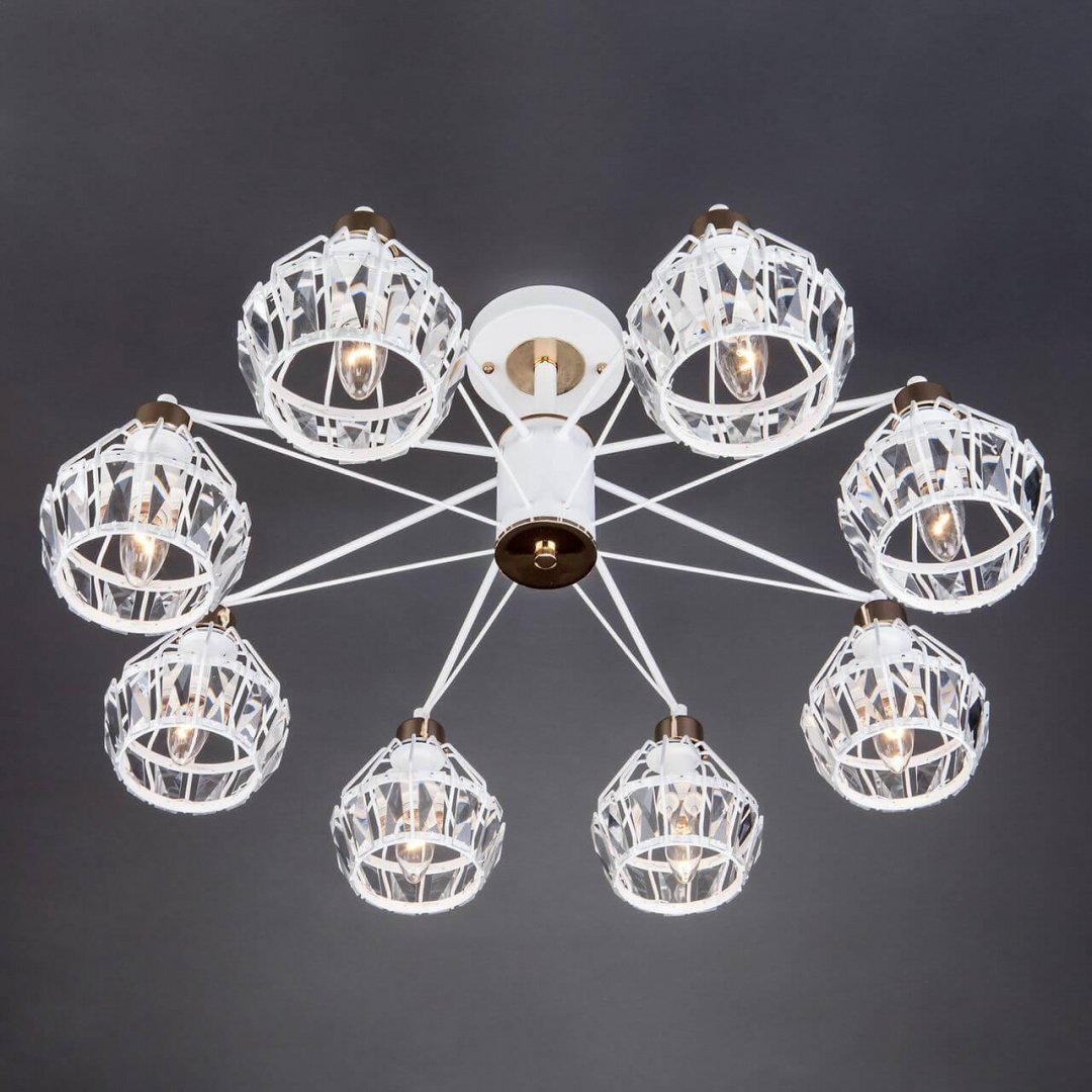 Наши специалисты ответят на любой интересующий вопросЛюстра 70075/8 белый из серии «Lord» от производителя Eurosvet (Китай). Дизайн-стиль лофт, современный, модерн. Отлично подойдет для такого типа помещений, как гостиная. Цвет товара белый, прозрачный. Используемые материалы: металл. С учетом технических характеристик мощности хватит для освещения 26.6 м2.