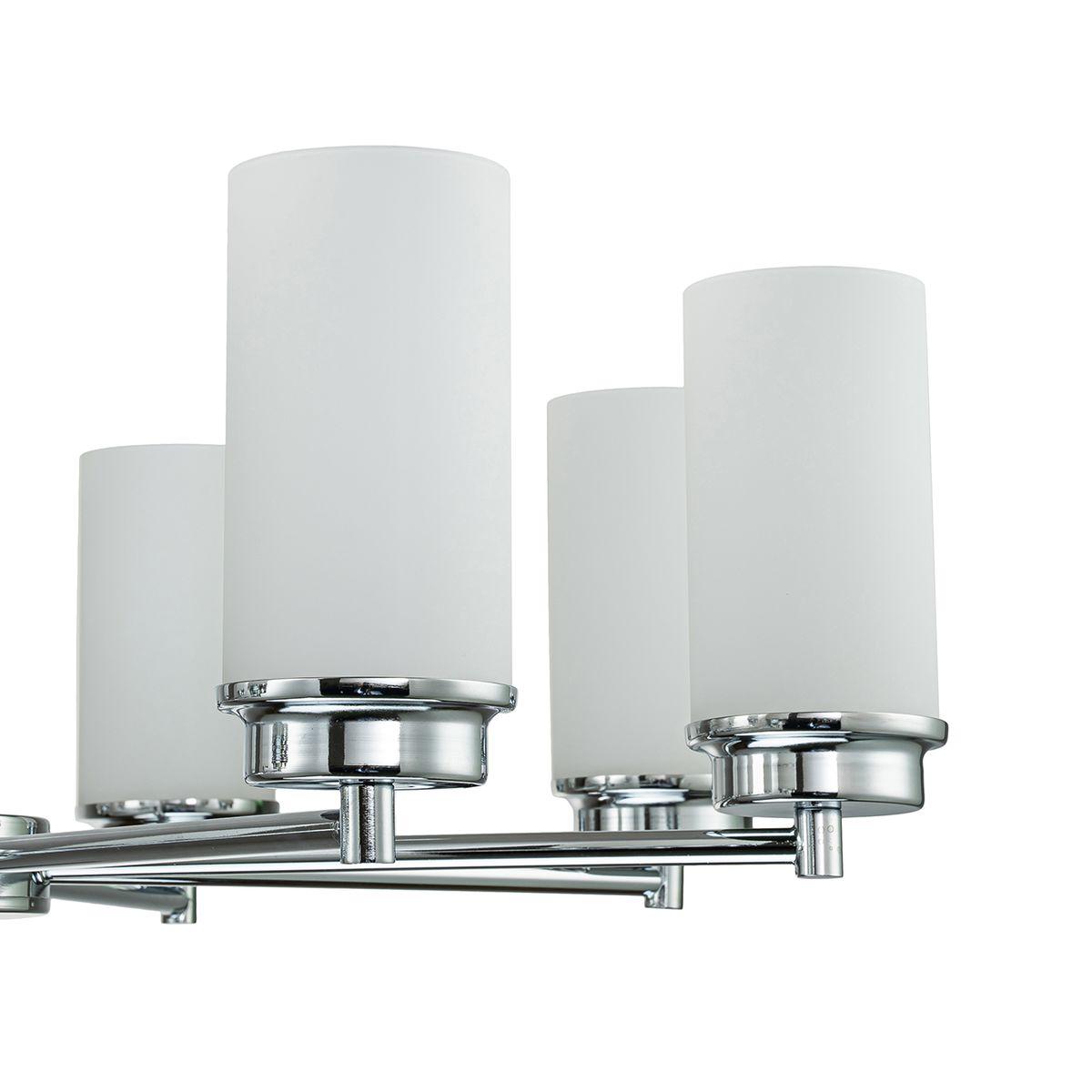 Способ крепления: монтажная пластина. Дизайн и форма плафона цилиндр. Направление плафонов вверх. Цоколь E14. Вид ламп: накаливания. Количество ламп 8 шт. Мощность одной лампы составляет 40 Вт. Общая мощность 240 Вт. Напряжение 220-240 Вольт.