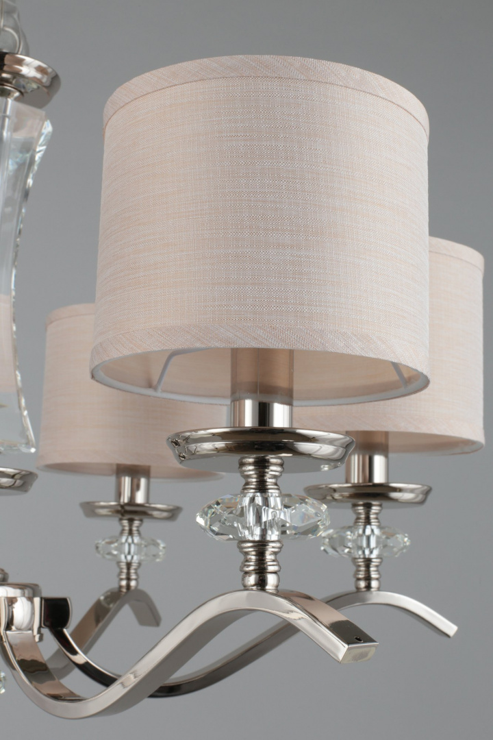 Наши специалисты ответят на любой интересующий вопросЛюстра APL.715.03.06 из серии «Okin» от производителя APLOYT (Польша). Дизайн-стиль американский, неоклассика. Отлично подойдет для такого типа помещений, как спальня. Цвет товара бежевый, серебристый. Используемые материалы: металл, текстиль. С учетом технических характеристик мощности хватит для освещения 13.3 м2.