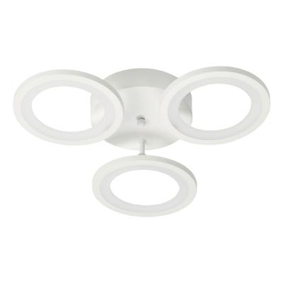 Компактный светильник для стандартной высоты потолка. Металлическое основание светильника окрашено в белый цвет. Каркас плафона выполнен из сплава алюминия с цинком и окрашен в цвет основания. Светодиодные источники света закрыты белым матовым акрилом. Светильник приходит в состоянии частичной сборки в компактной упаковке: вся электрика подсоединена, достаточно закрепить плафоны на корпусе.