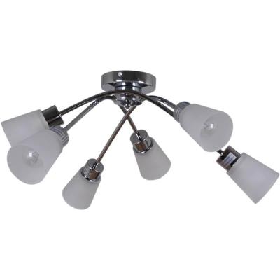 Способ крепления: монтажная пластина. Дизайн и форма плафона конус. Направление плафонов вниз. Цоколь E14. Вид ламп: накаливания. Количество ламп 6 шт. Мощность одной лампы составляет 40 Вт. Общая мощность 240 Вт. Напряжение 220 Вольт.