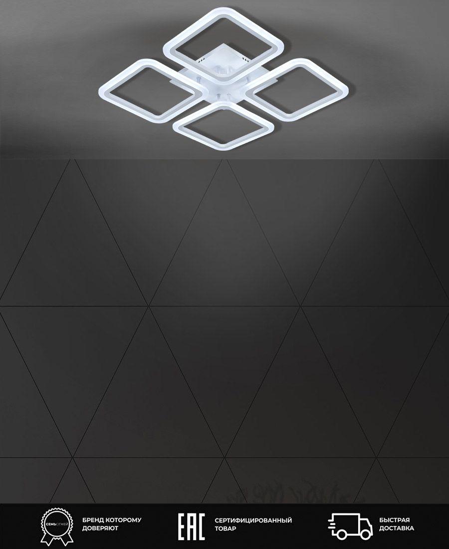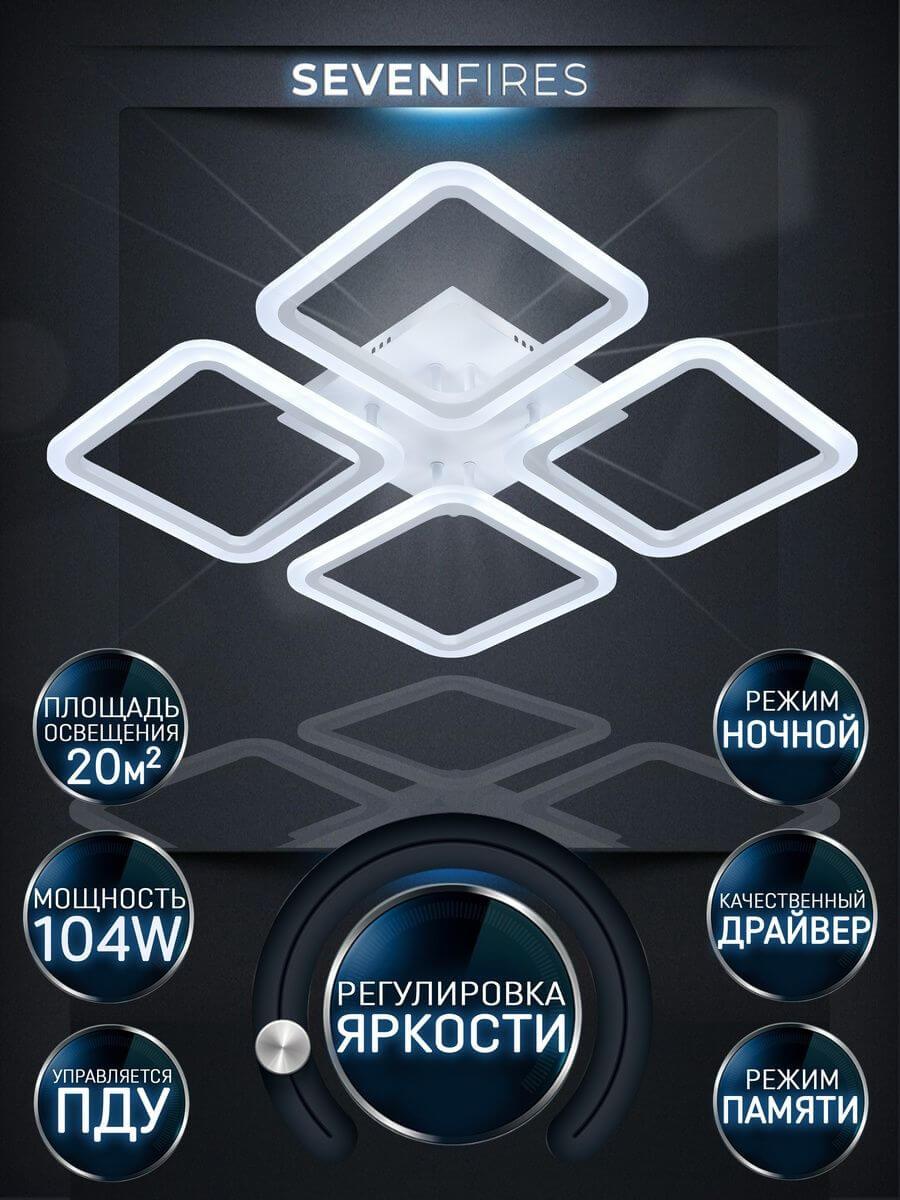 Потолочная светодиодная люстра SF5041/4C-WT из серии «Barna» от производителя Seven Fires (Россия). Дизайн-стиль хай-тек. Отлично подойдет для такого типа помещений, как гостиная, спальня. Цвет товара белый. Используемые материалы: металл, акрил. С учетом технических характеристик мощности хватит для освещения 20 м2.