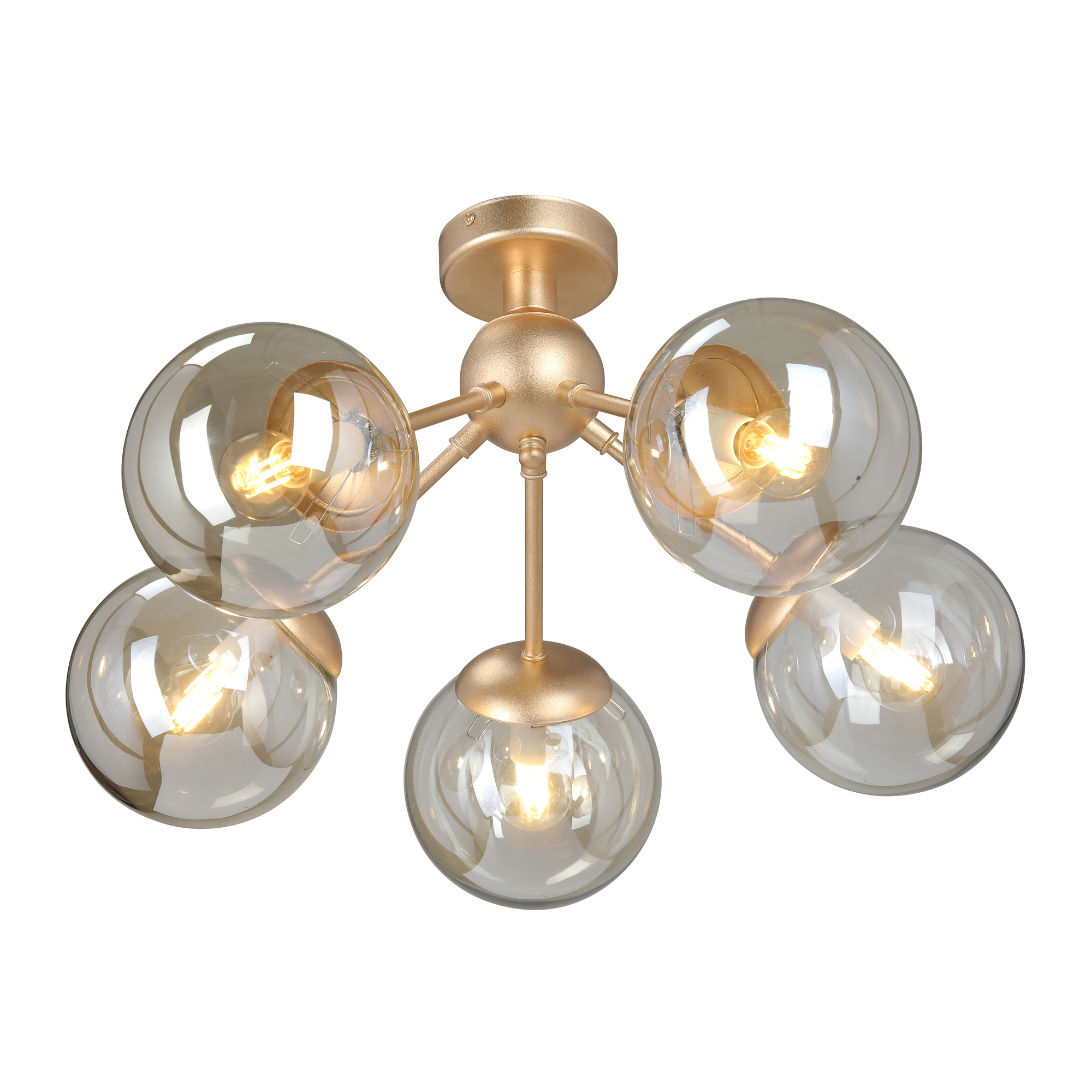 Способ крепления: монтажная пластина. Дизайн и форма плафона сферический. Направление плафонов вниз. Цоколь E14. Количество ламп 5 шт. Мощность одной лампы составляет 40 Вт. Общая мощность 200 Вт.