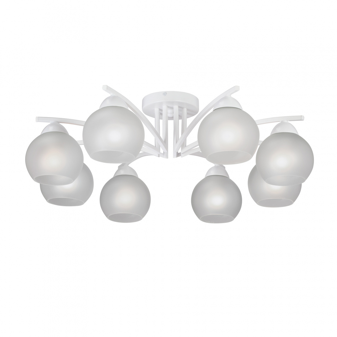 Способ крепления: монтажная пластина. Дизайн и форма плафона сферический. Направление плафонов вниз. Цоколь E27. Вид ламп: накаливания. Количество ламп 8 шт. Мощность одной лампы составляет 40 Вт. Общая мощность 320 Вт. Напряжение 220 Вольт.