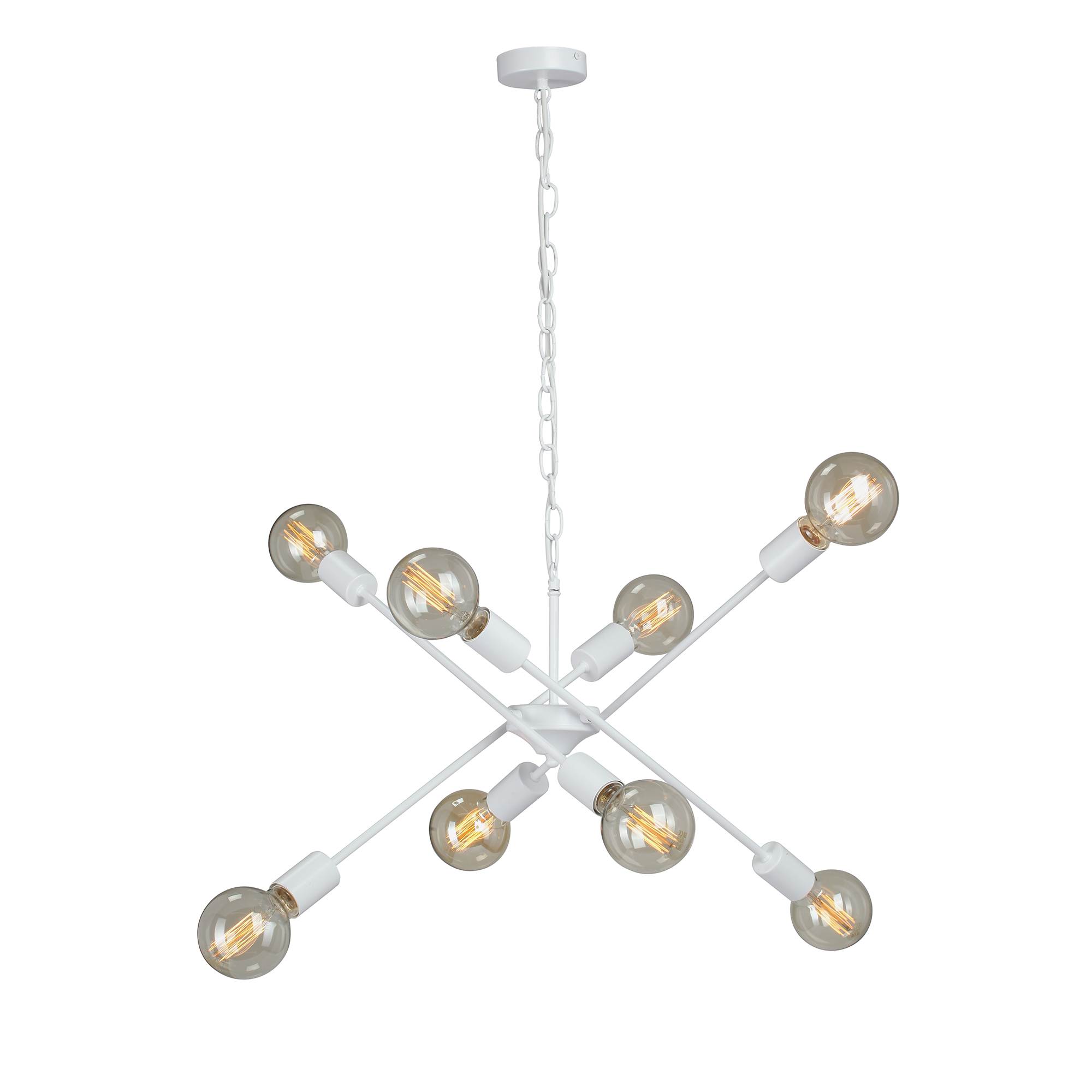 Способ крепления: монтажная пластина. Дизайн и форма плафона свеча. Направление плафонов вверх, вниз. Цоколь E27. Количество ламп 8 шт. Мощность одной лампы составляет 40 Вт. Общая мощность 320 Вт.