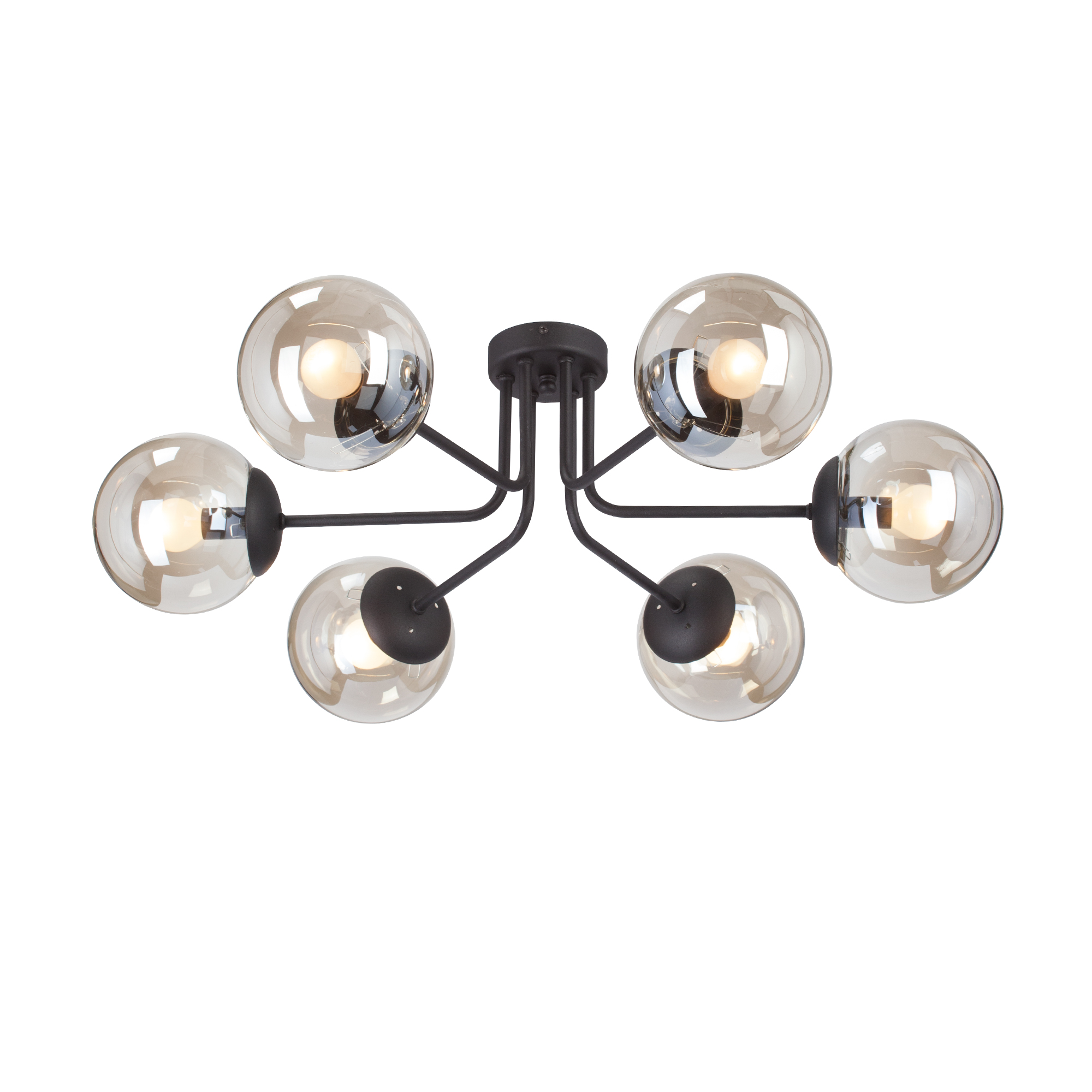 Способ крепления: монтажная пластина. Дизайн и форма плафона сферический. Направление плафонов в бок. Цоколь E14. Вид ламп: накаливания. Количество ламп 6 шт. Мощность одной лампы составляет 40 Вт. Общая мощность 240 Вт. Напряжение 220 Вольт.