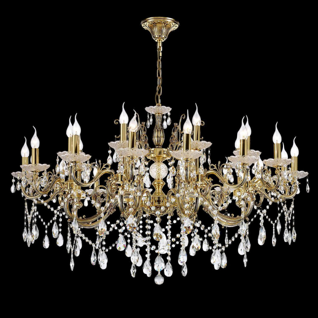 Цоколь E14. Вид ламп: накаливания. Количество ламп 24 шт. Мощность одной лампы составляет 40 Вт. Общая мощность 960 Вт. Напряжение 220-240 Вольт.