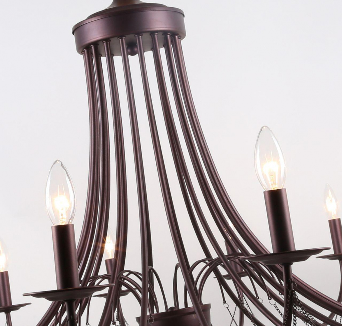 Цоколь E14. Вид ламп: накаливания. Количество ламп 18 шт. Мощность одной лампы составляет 40 Вт. Общая мощность 720 Вт. Напряжение 220-240 Вольт.