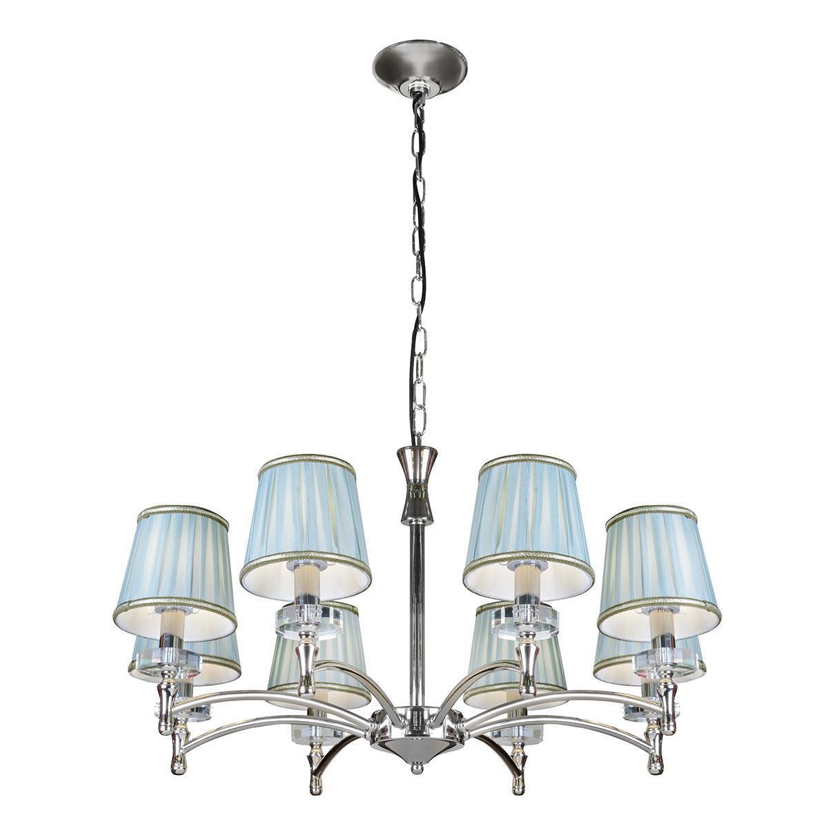 Подвесная люстра 82336/8 CR из серии «Olivia» от производителя iLamp (Италия). Дизайн-стиль неоклассика. Отлично подойдет для такого типа помещений, как гостиная. Цвет товара зеленый, серебристый. Используемые материалы: металл, текстиль. С учетом технических характеристик мощности хватит для освещения 17.7 м2.