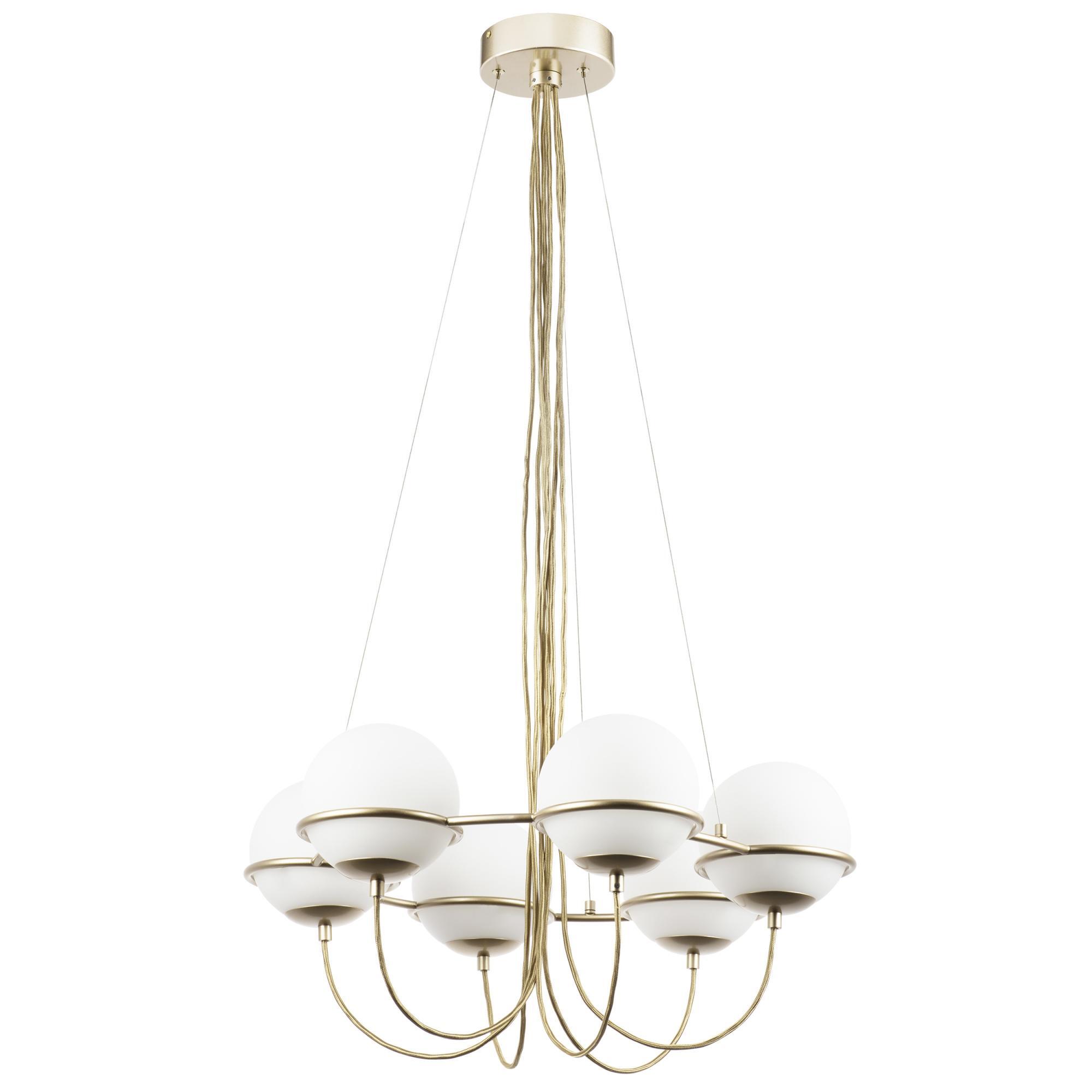 Дизайн и форма плафона округлый. Цоколь E14. Вид ламп: накаливания. Количество ламп 6 шт. Мощность одной лампы составляет 40 Вт. Общая мощность 240 Вт. Напряжение 220-240 Вольт.