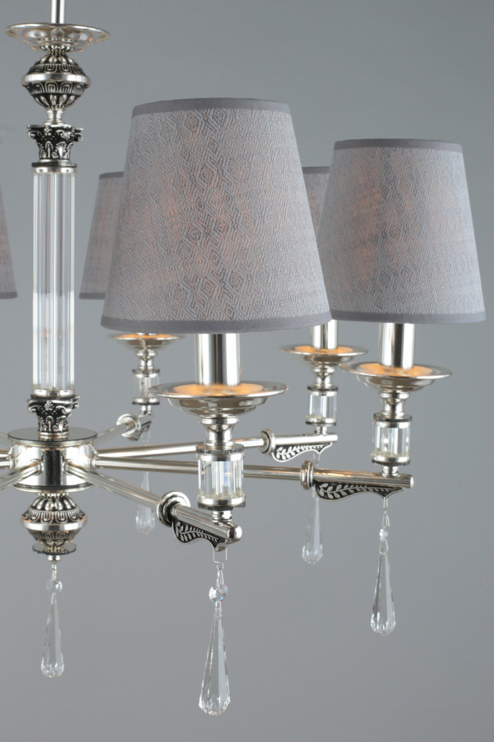 Наши специалисты ответят на любой интересующий вопросПодвесная люстра OML-64203-08 из серии «Rivoli» от производителя Omnilux (Италия). Дизайн-стиль неоклассика. Отлично подойдет для такого типа помещений, как гостиная. Цвет товара серебристый, серый. Используемые материалы: металл, текстиль. С учетом технических характеристик мощности хватит для освещения 26.6 м2.
