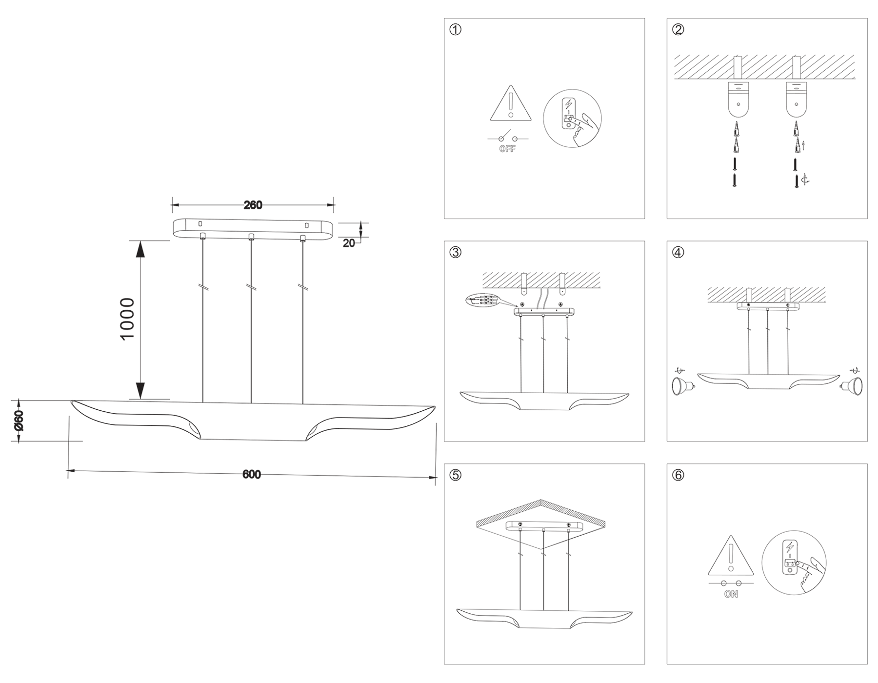 - Тип светильника Подвесные