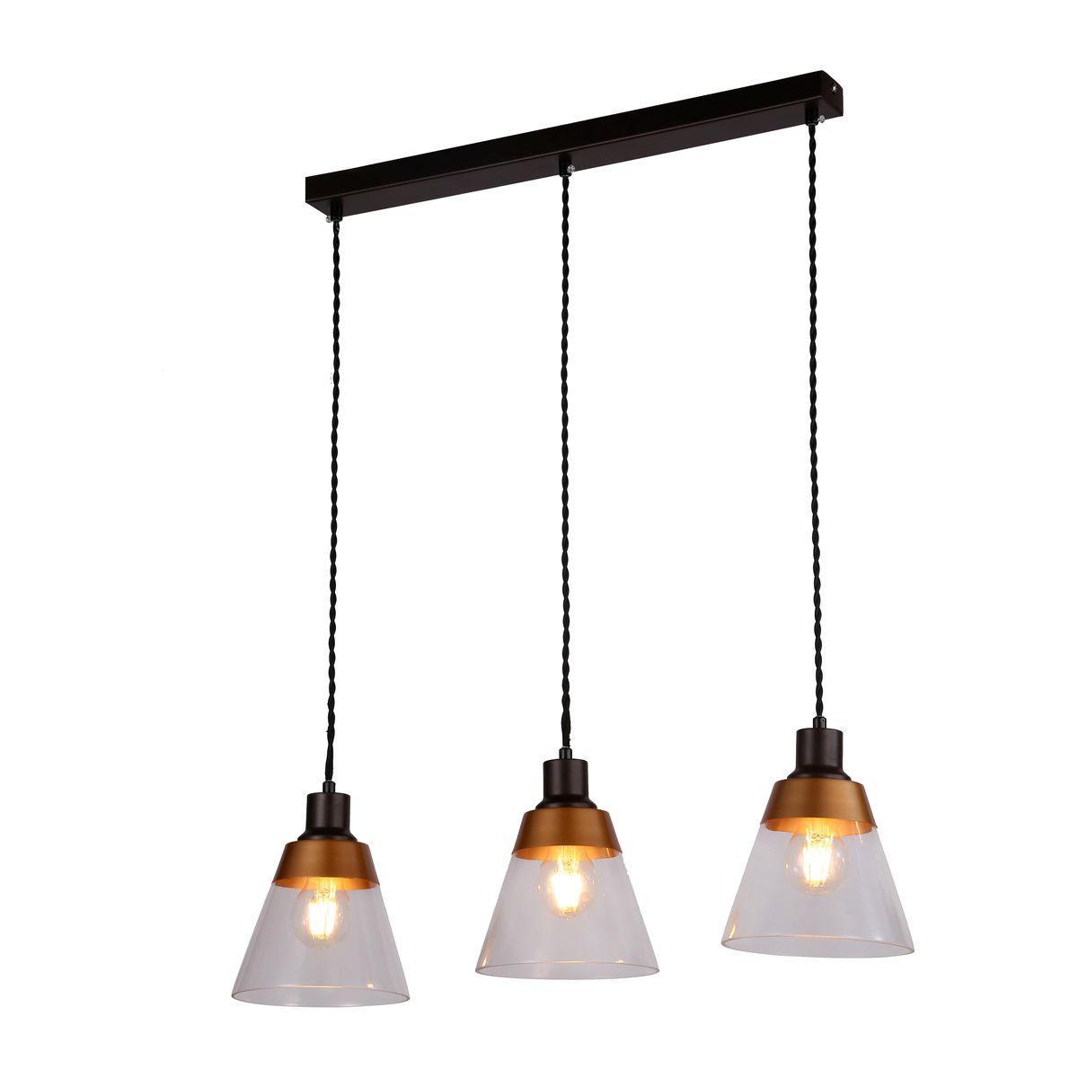 Способ крепления: монтажная пластина. Дизайн и форма плафона конус. Направление плафонов вниз. Цоколь E27. Вид ламп: накаливания. Количество ламп 3 шт. Общая мощность 180 Вт. Напряжение 220-240 Вольт.
