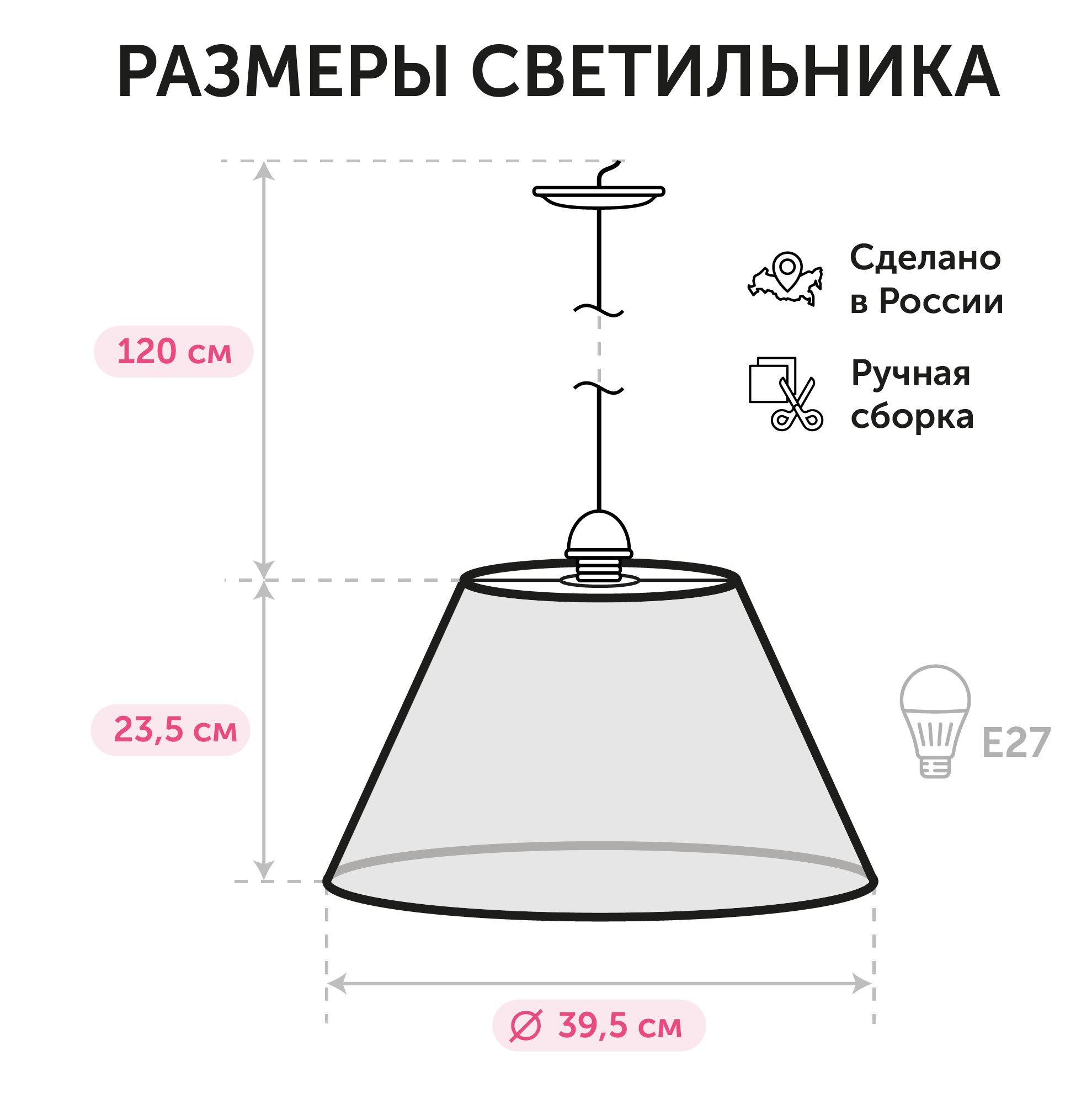Способ крепления: монтажная пластина. Дизайн и форма плафона конус. Направление плафонов вниз. Цоколь E27. Вид ламп: накаливания, lED. Количество ламп 1 шт. Мощность одной лампы составляет 60 Вт. Общая мощность 60 Вт. Напряжение 220 Вольт.