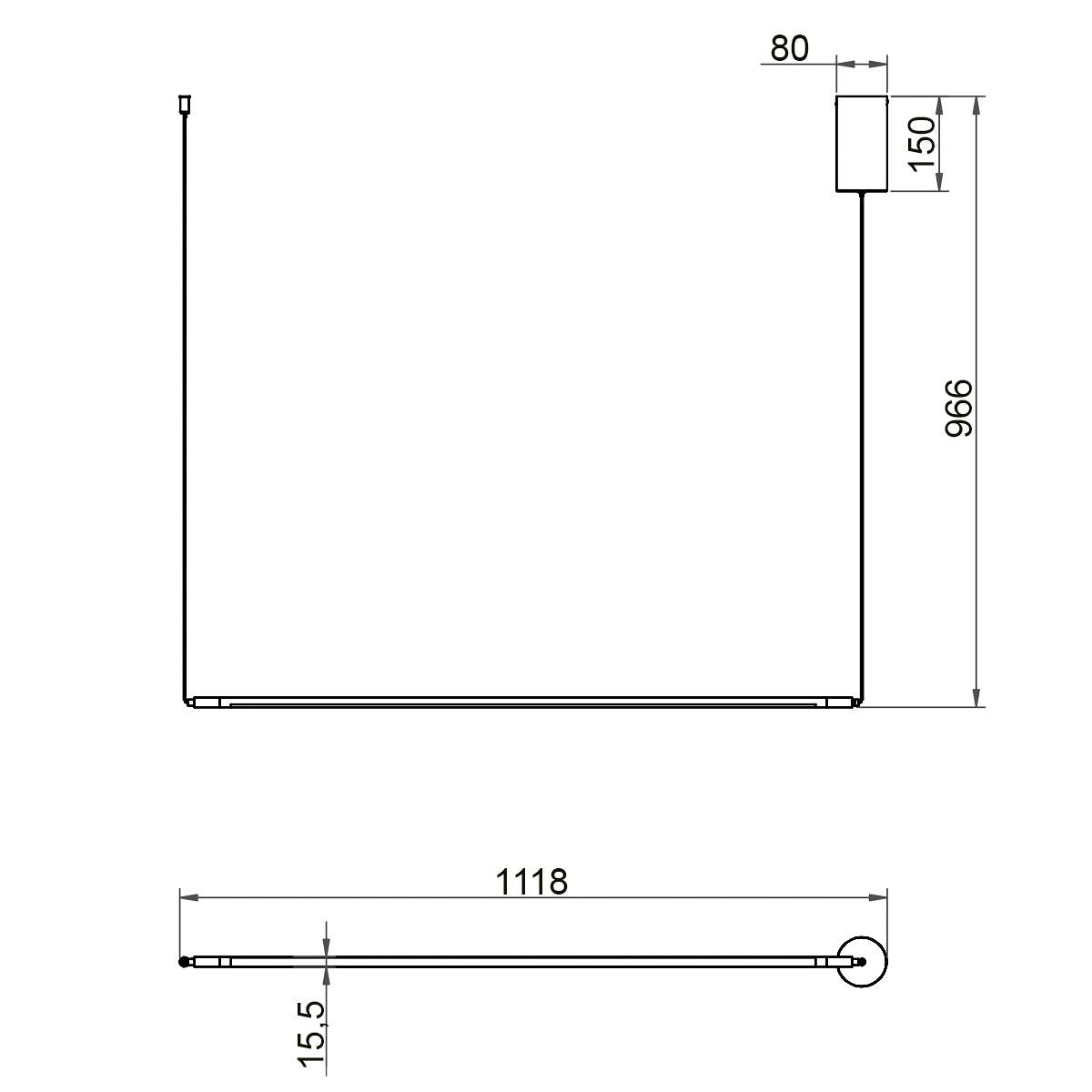 Длина 1118 мм. Ширина 80 мм. Высота 966 мм. Глубина 80 мм.