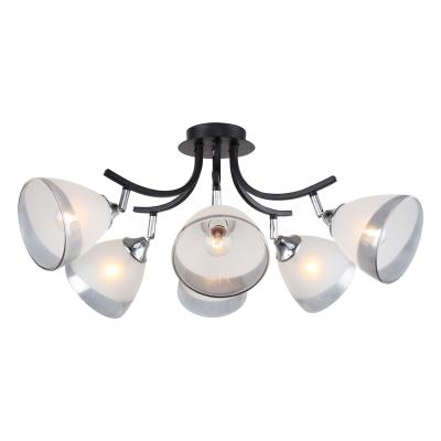 Способ крепления: монтажная пластина. Дизайн и форма плафона конус. Направление плафонов изменяемое. Цоколь E14. Количество ламп 6 шт. Мощность одной лампы составляет 40 Вт. Общая мощность 240 Вт.