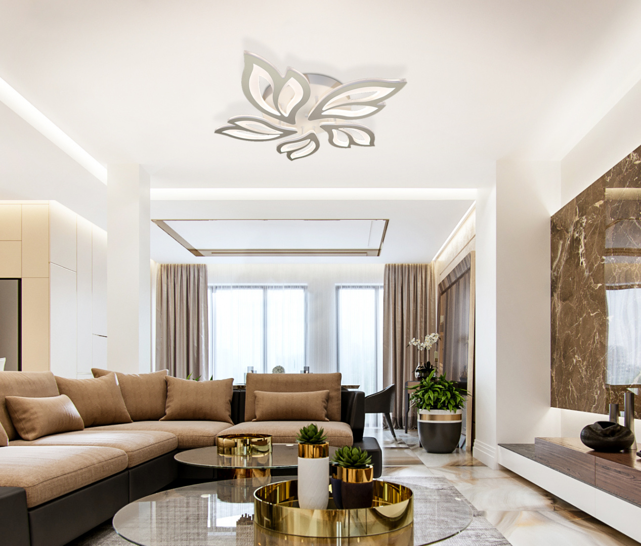 Способ крепления: монтажная пластина. Дизайн и форма плафона декоративный. Направление плафонов вниз. Цоколь LED. Вид ламп: светодиодная. Мощность одной лампы составляет 100 Вт. Напряжение 230 Вольт. Поток света 8000 Люмен.