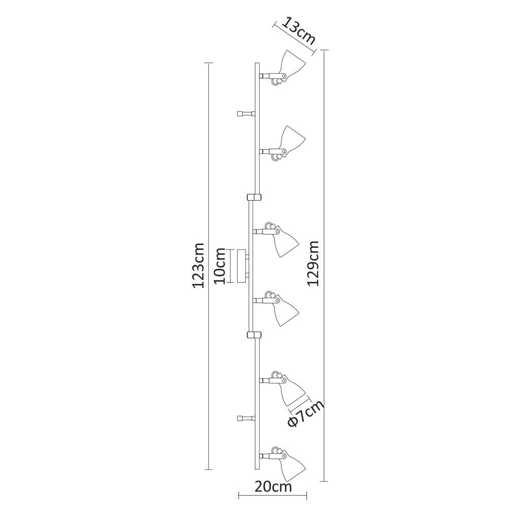 Способ крепления: монтажная пластина. Дизайн и форма плафона округлый. Направление плафонов изменяемое. Цоколь GU10. Вид ламп: галогеновая. Количество ламп 6 шт. Мощность одной лампы составляет 50 Вт. Общая мощность 300 Вт. Напряжение 220-240 Вольт.
