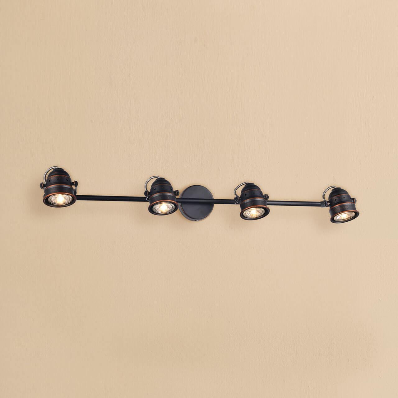 Способ крепления: монтажная пластина. Дизайн и форма плафона округлый. Направление плафонов изменяемое. Цоколь GU10. Вид ламп: галогеновая. Количество ламп 4 шт. Мощность одной лампы составляет 50 Вт. Общая мощность 200 Вт. Напряжение 220-240 Вольт.