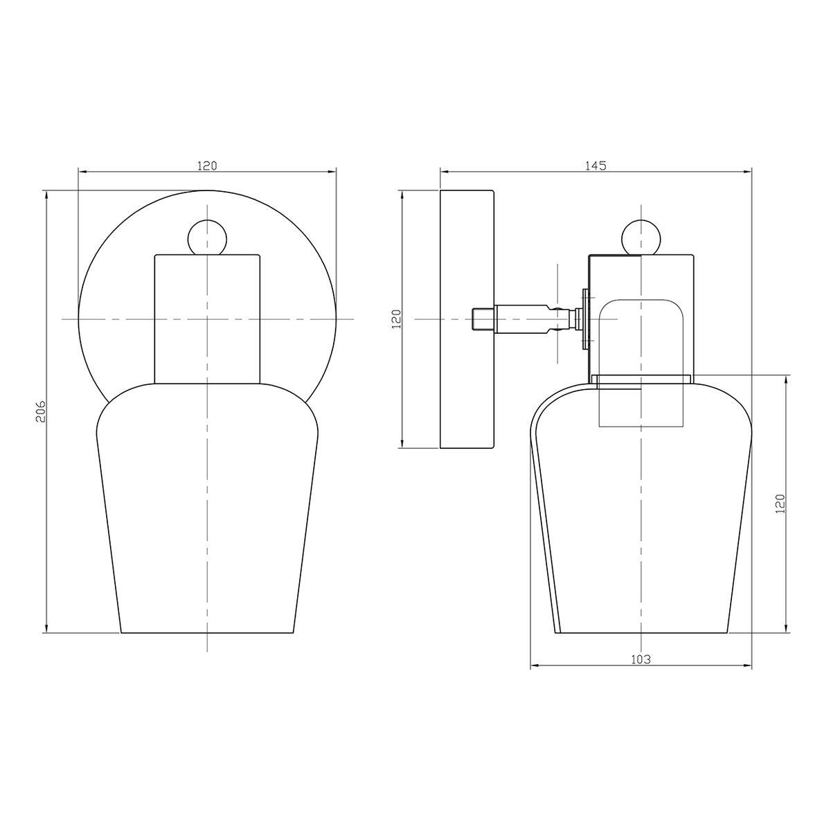 Ширина 120 мм. Высота 206 мм. Глубина 150 мм.