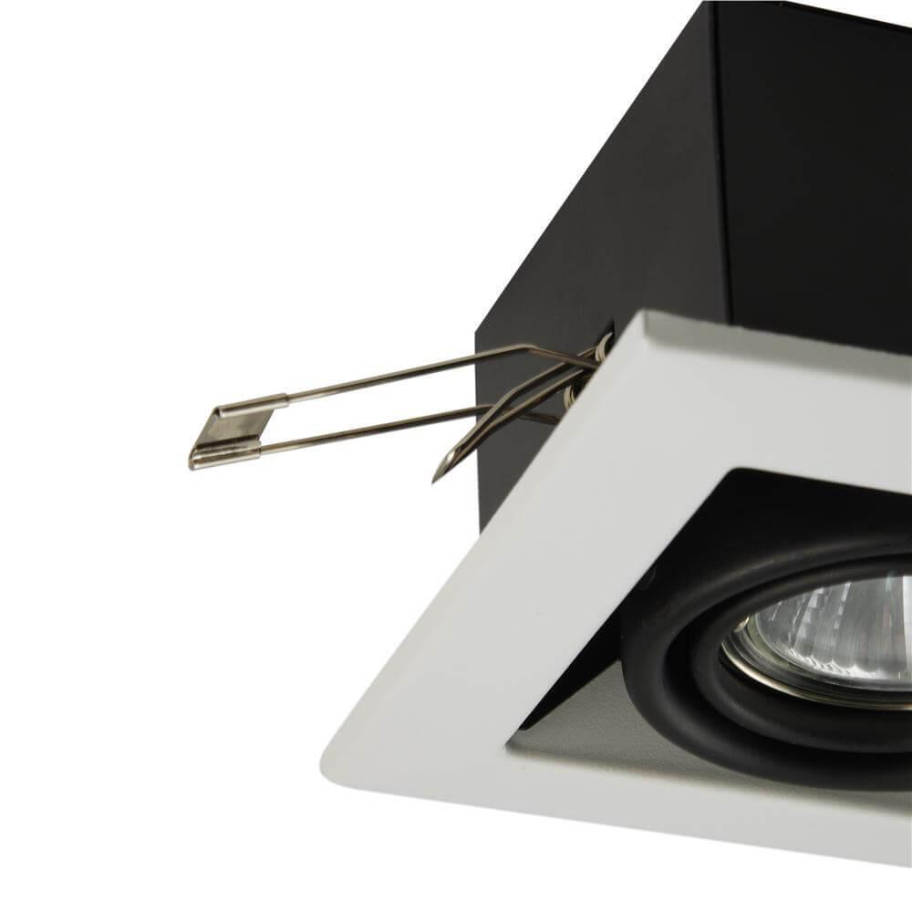 Способ крепления: монтажная пластина. Дизайн и форма плафона прямоугольный. Направление плафонов вниз. Цоколь GU10. Вид ламп: галогеновая. Количество ламп 1 шт. Мощность одной лампы составляет 50 Вт. Общая мощность 50 Вт. Напряжение 220-240 Вольт.