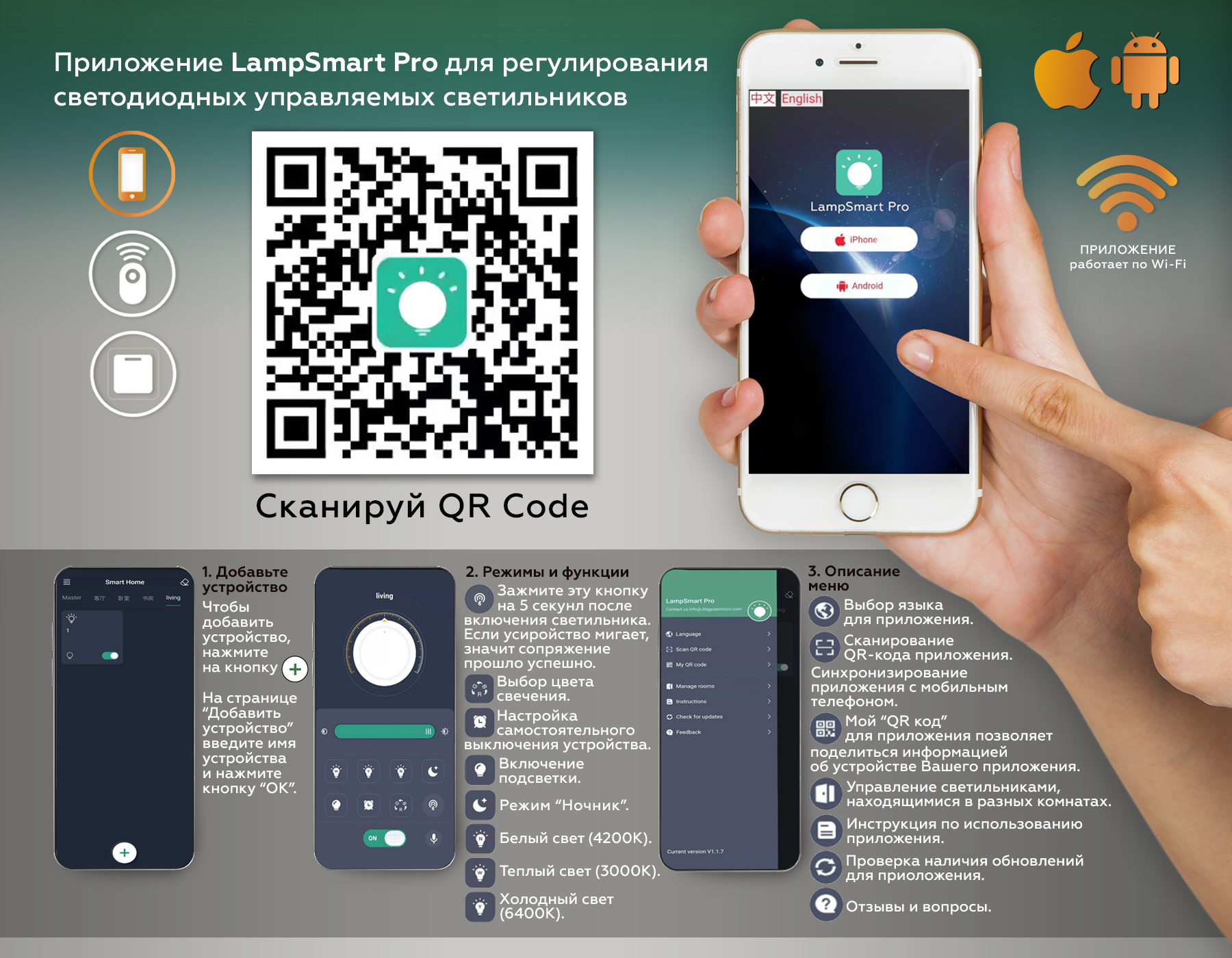 - Цветовая температура, K 3000-6400