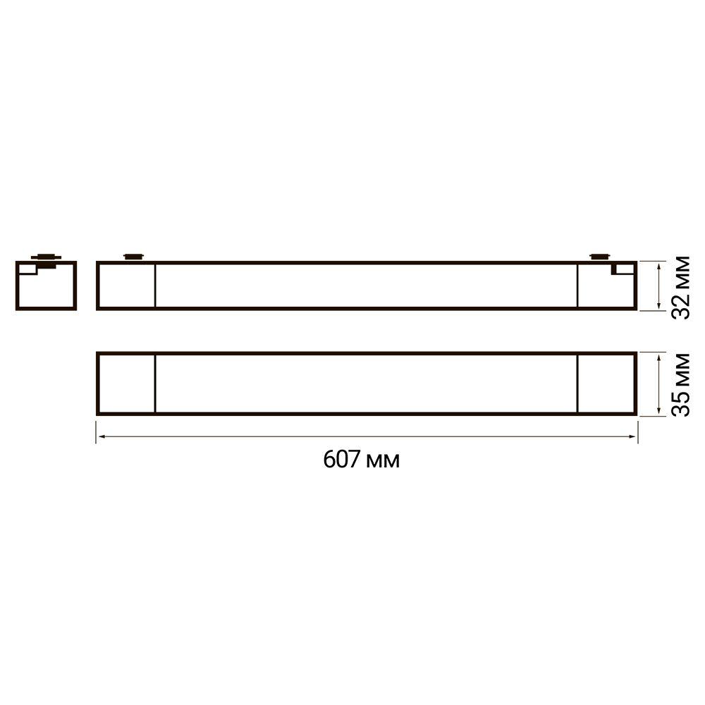 Длина 607 мм. Ширина 35 мм. Высота 32 мм.