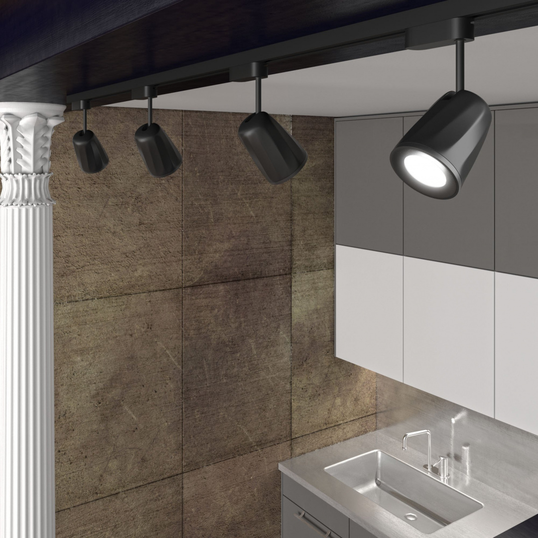 Дизайн и форма плафона конус. Направление плафонов изменяемое. Вид ламп: светодиодная. Мощность одной лампы составляет 9 Вт. Поток света 495 Люмен.