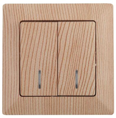 Выключатель двухклавишный с подсветкой 4-105-11 из серии «Solo дерево» от производителя ЭРА (Россия). Дизайн-стиль современный.